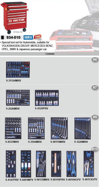 King Tony 286 részes, 7 fiókos szerszámoskocsi EVA 934-010MRV