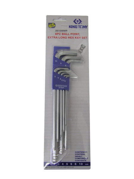 King Tony 8 részes gömbvégű extra hosszú imbuszkulcs készlet 2-10mm 20108MR