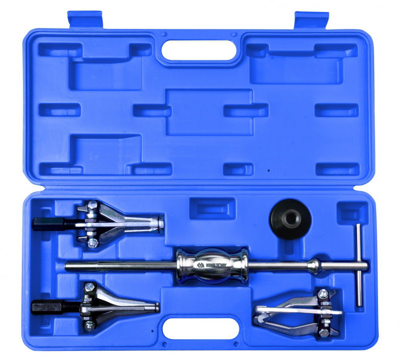 Tartalma: 1db 400mm-es T-szár; 1db 1,2kg-os csúszókalapács; 1db állítható anya; 1 szet belső kihúzó átm.15-30mm; 1 szet belső kihúzó átm. 30-80mm; 1 szet külső lehúzó átm. 15-80mm