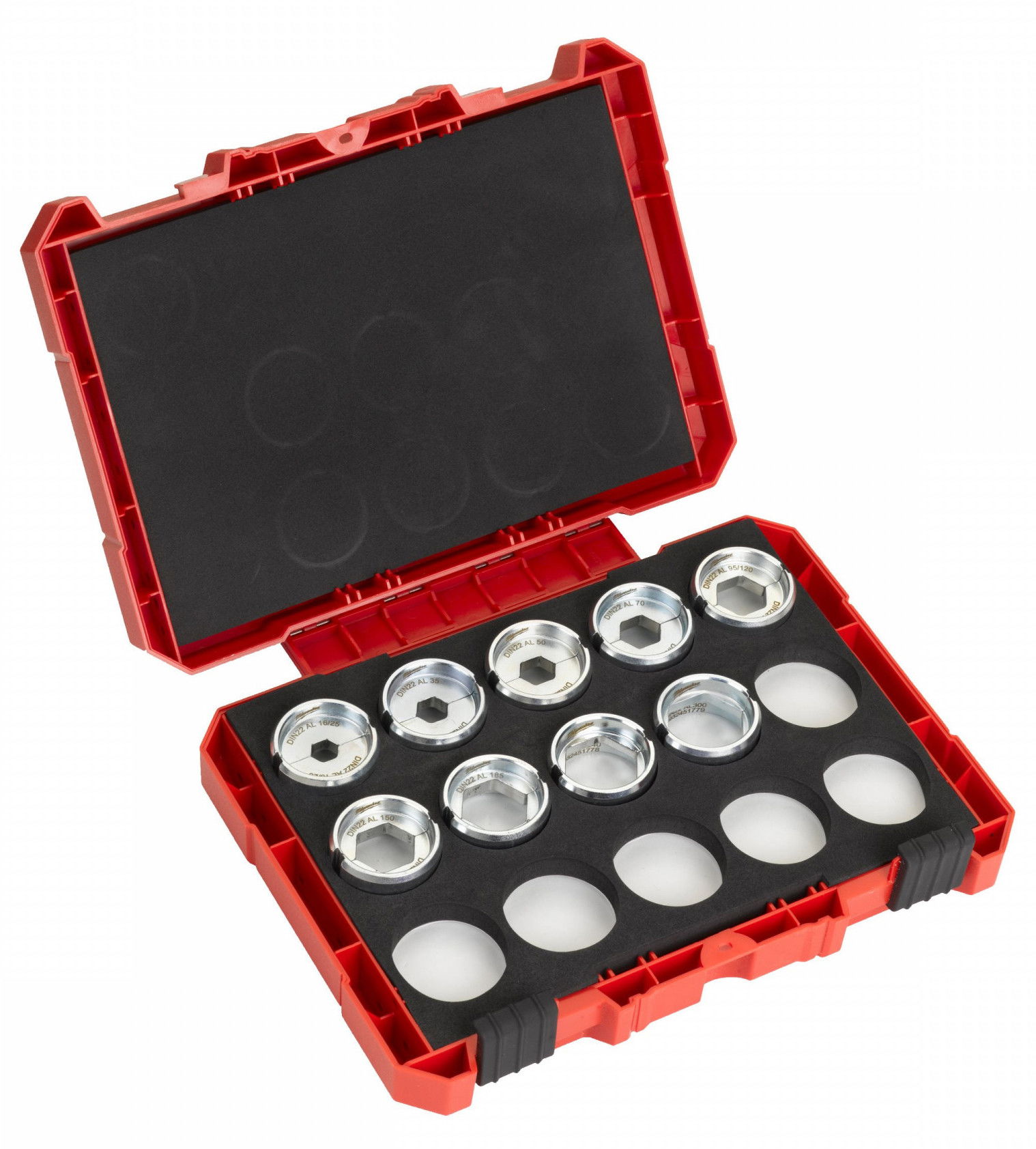 9 darabos krimpelő betét készlet - 16/25, 35, 50, 70, 95/120, 150, 185, 240 és 300 mm2.