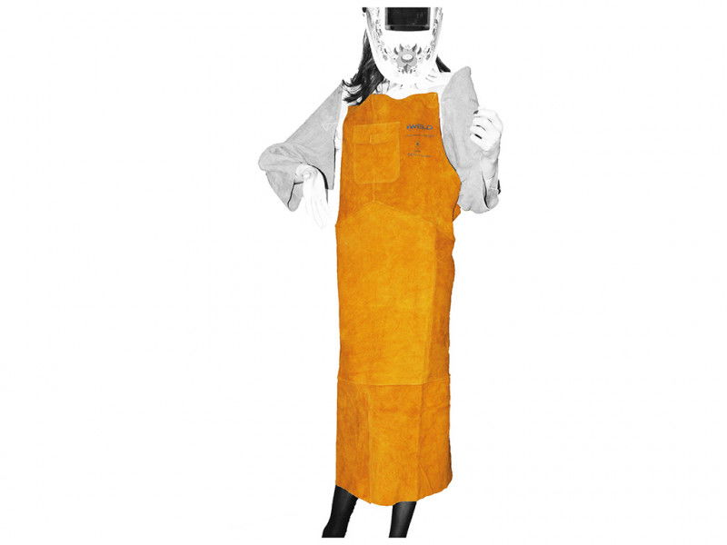 KEVLAR lángálló szállal varrott, növelt szikra és lángállóságú impregnált marhahasíték bőr, csatos nyak és derék keresztpánttal. 100°C kontakt hő elleni védelem (60 sec).