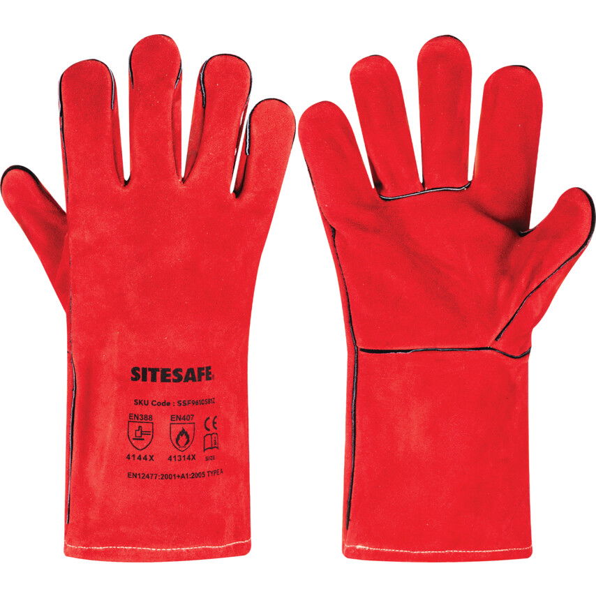 Sitesafe Piros hasított bőr hegesztőkesztyű (9-es méret)